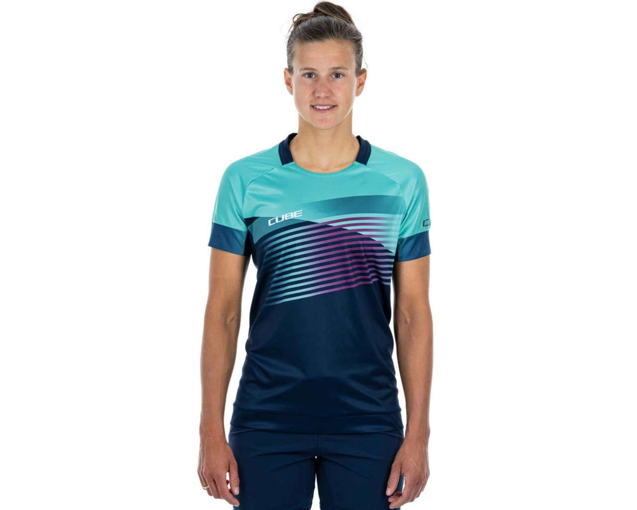 Cube Teamline Damen Rundhalstrikot kurzarm | blue´n´mint